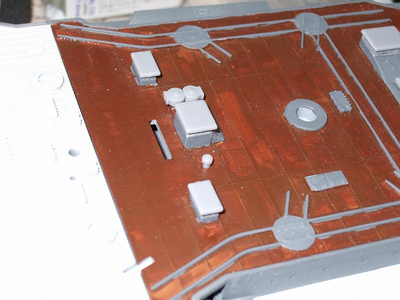 6回目は、飛行作業甲板の塗装と上甲板の木甲板の塗装